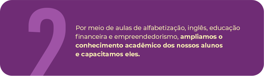 Levamos o impacto socioeducacional e promovemos o desenvolvimento integral da criança e do adolescente em regiões que se encontram em situação de vulnerabilidade social.